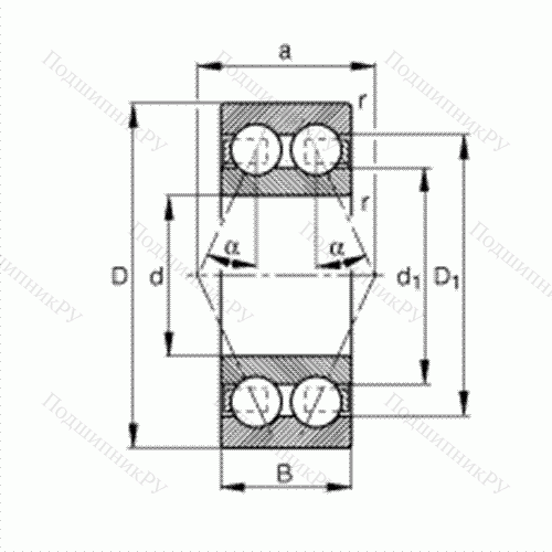 двухрядные, угол контакта α = 25°