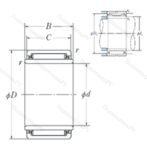 Ширина наружной обоймы (C) - 30 мм.