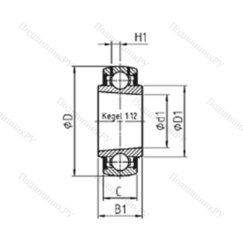 Ширина внутренней обоймы (B1) - 25 мм.