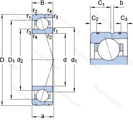 | Номинальная статическая грузоподъёмность | C0 | 40.5 | kN | |